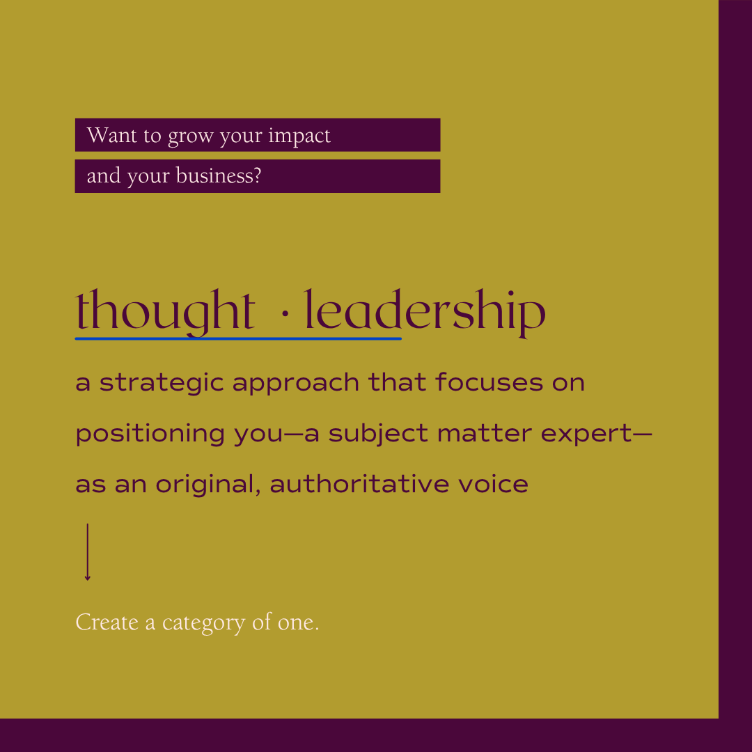 Long story longer, thought leadership plays a crucial role in marketing by differentiating you from the competition, creating a category of one by establishing trust with your audience, and growing visibility and your bottom line. It allows thought leaders like you to showcase your expertise, build a loyal following, and shape industry conversations. Thought leadership marketing also contributes to your brand visibility, reputation management, and customer retention, making it an essential component of a comprehensive marketing strategy.
